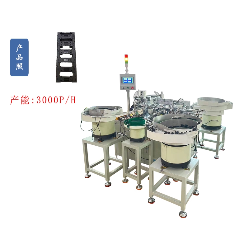 1:双拖链自动组装机采用气缸为动力,PLC可编程控制器,直观分站式装配工作原理